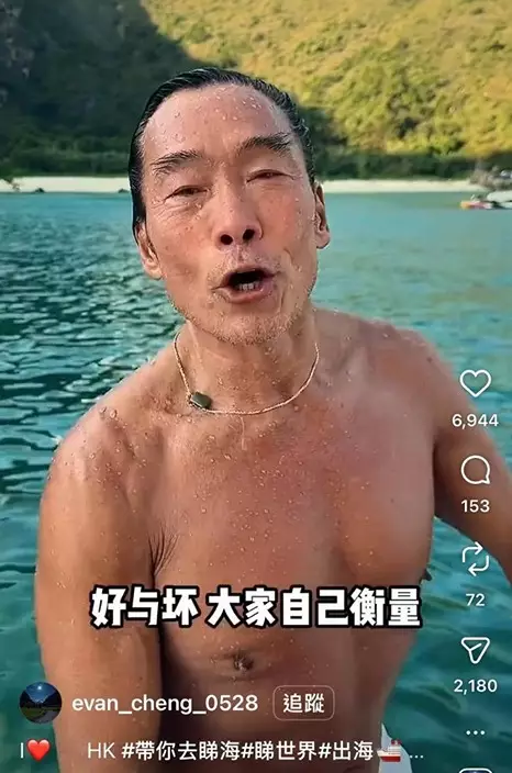 最近佢上載一段出海暢泳嘅片段,片中見佢上身赤裸,胸肌、腹肌線條超清晰,「麒麟臂」仲要厚實到誇張,完全唔似61歲。網民睇完即刻洗版式留言:「呢個係逆生長」、「仲Fit過好多後生仔」、「司徒浩南返嚟啦!」