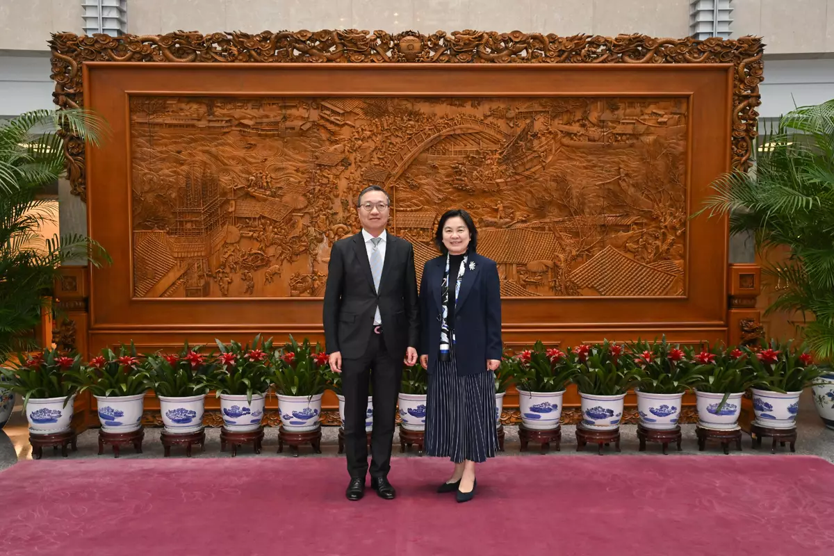 隨後,林定國與外交部副部長華春瑩會面,雙方就支持香港特區政府及律政司與國際法律機構合作等議題交換意見,旨在助力提升香港作為國際法律及解決爭議服務中心的地位。