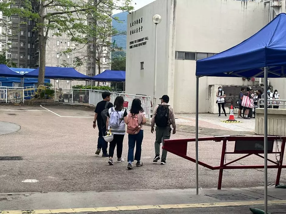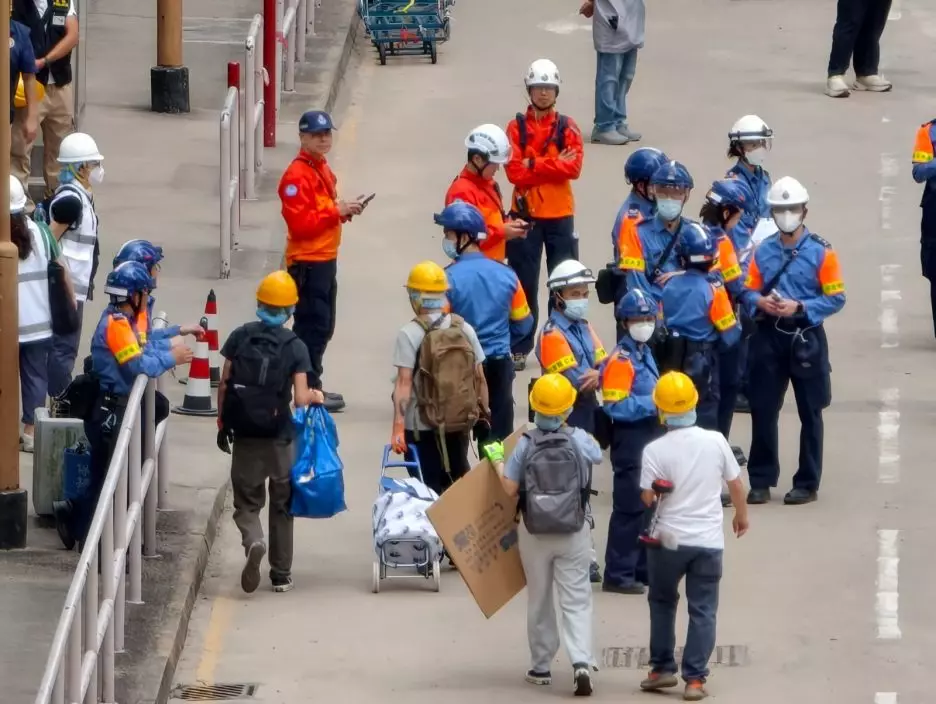 4月22日下午宏福苑宏新閣居民上樓執搭。巴士的報記者攝