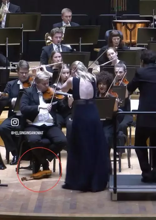 近日,芬蘭拉赫蒂市(Lahti)西貝流士音樂廳(Sibelius Hall)一場音樂會上演驚意外。一名英國指揮家霍爾斯(Matthew Halls)演出期間疑因過於投入,揮動指揮棒時不慎擊中一把價值逾100萬英鎊的小提琴,令樂器當場飛脫,場面一度令人屏息。所幸演奏芬蘭小提琴家瓦哈拉(Elina Vähälä)反應迅速,在千鈞一髮之際用腳擋住琴身,成功避免小提琴重摔落地。據悉,涉事小提琴為18世紀意大利著名製琴師瓜達尼尼(Giovanni Battista Guadagnini)的作品,屬極為珍貴的古董樂器。