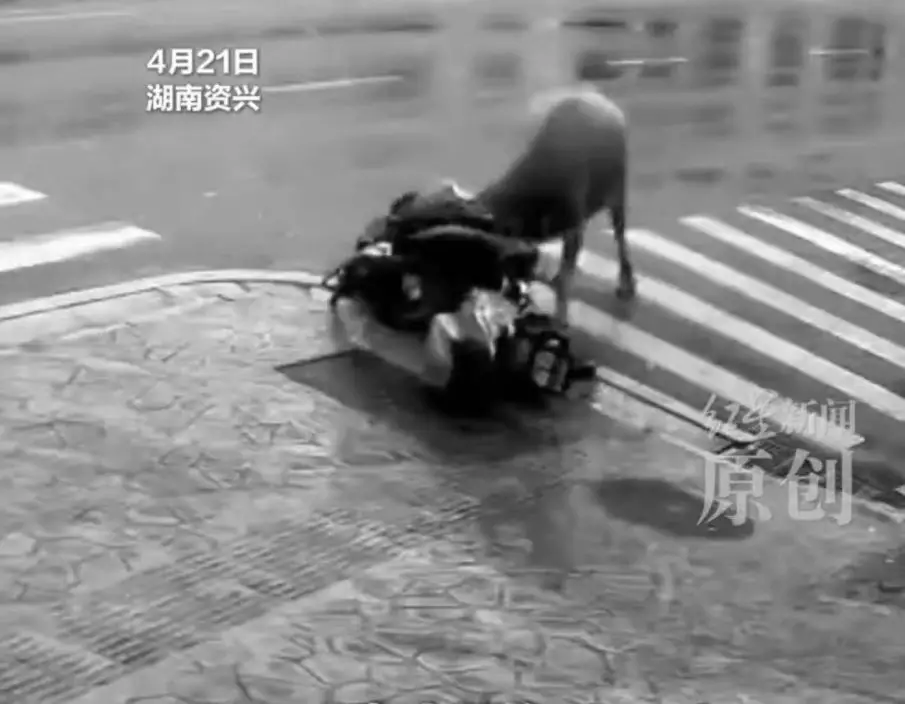4月21日,湖南資興一處街頭發生驚險意外,一頭原本正被運往屠宰場的水牛途中疑因受外界刺激,突從貨車跳下上演「越獄」戲碼,之後更在街頭失控狂奔,沿途衝撞途人及車輛。