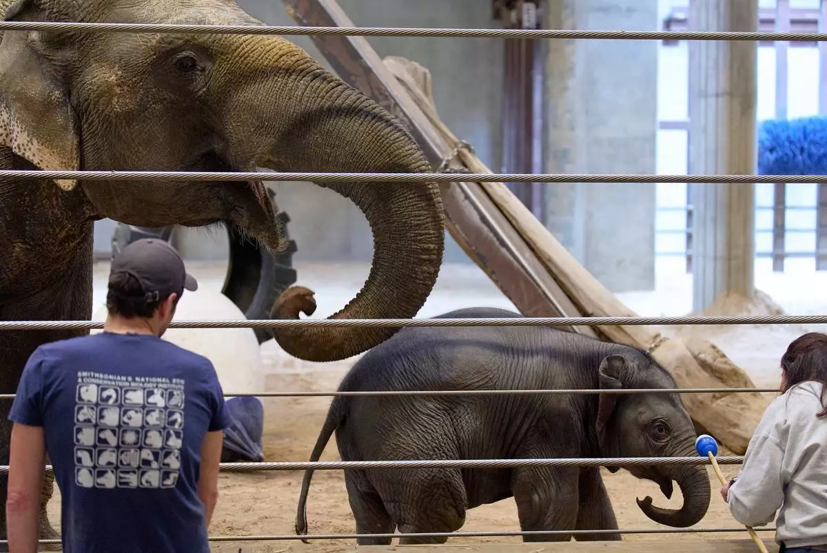 約翰甘迺迪表演藝術中心新任執行董事兼營運總監馬特弗洛卡(Matt Floca),攝於2026年4月22日周三華盛頓一場旨在展示建築損壞的傳媒導覽活動,期間展示一道伸縮縫。(美聯社圖片/Julia Demaree Nikhinson) AP圖片