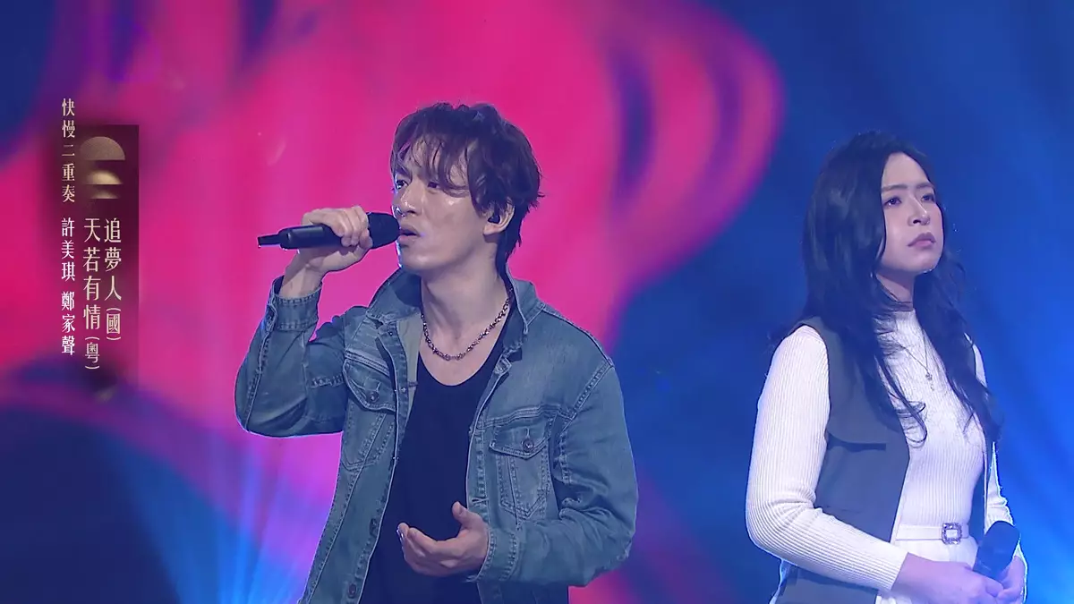 另一對焦點選手是許美琪和鄭家聲,兩人除了默契十足外,打扮亦很有心思。他們合唱《天若有情(粵)/追夢人(國)》,為了更加了解歌詞意思,許美琪表示練歌前必定要看電影《天若有情》。家聲穿上牛仔褸、牛仔褲扮「華Dee」,美琪亦模仿吳倩蓮於戲中的白色連身長裙造型,誓要勾起觀眾對電影的回憶。兩人以歌劇形式演唱,更特別「保持距離」互動,希望帶出電影主角是兩個世界的人的感覺。周國豐讚兩人很有默契,除了聲音同步外,肢體語言亦一樣同步。想知美琪與家聲的「神同步」能否取得高分數?宓婕與亦偉「強強聯手」是否一定贏硬?就要收看周日晚播出的《中年好聲音4》。
