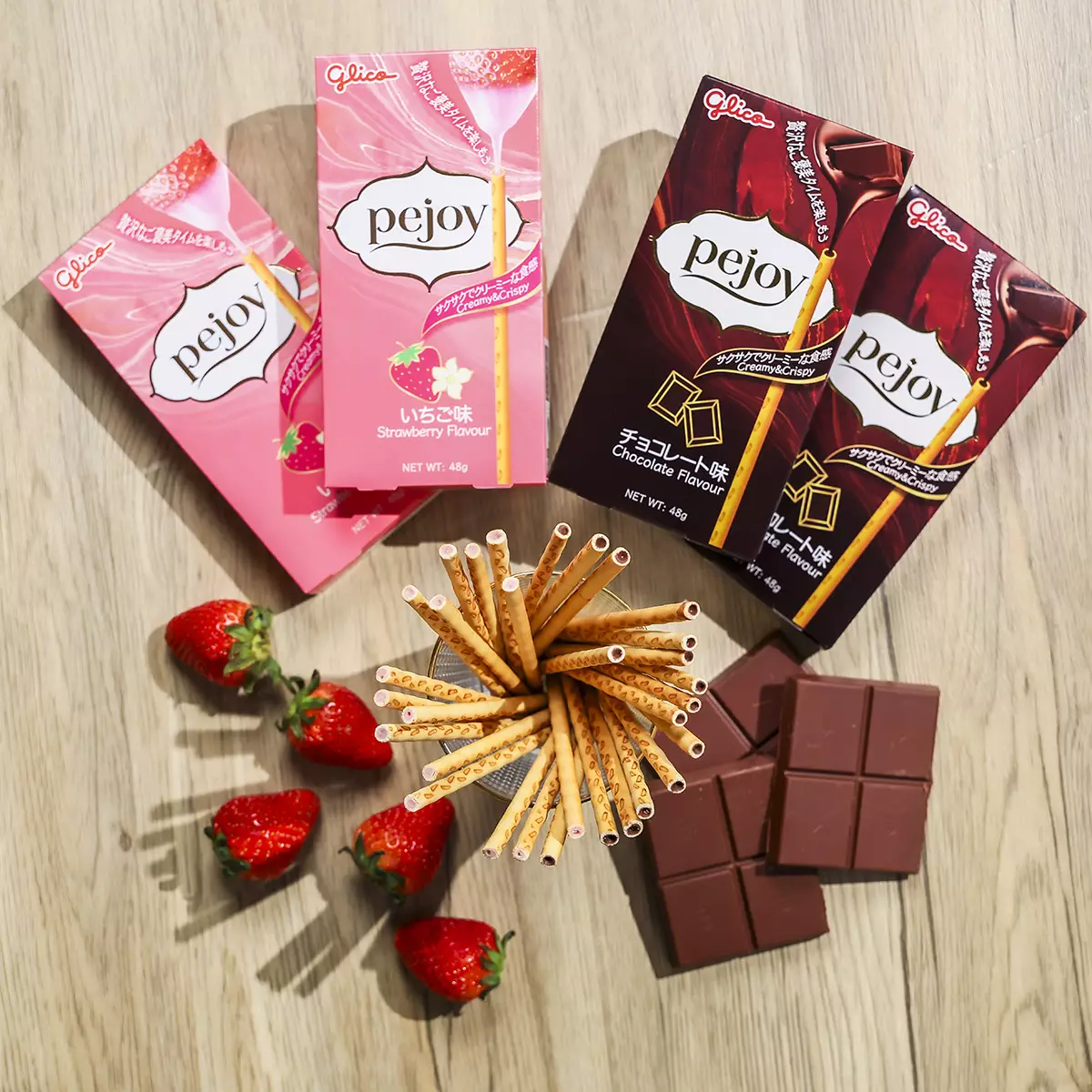 春暖花開,正是分享歡樂的好時節!固力果旗下三大餅乾條系列:餅乾條口味豐富嘅百力滋、外層塗滿各種風味朱古力醬嘅 Pocky,餅乾條包裹柔滑濃郁夾心醬嘅 pejoy,款款都各有滋味。今年,固力果「pejoy 超人氣夾心餅乾條」系列再度襲港,分別有經典「pejoy 朱古力味夾心餅乾條」及人氣「pejoy 士多啤梨味夾心餅乾條」。
