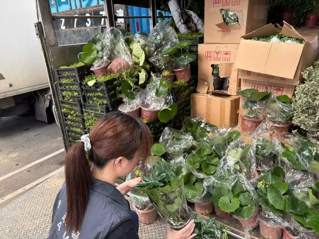市政署人員對進口植物進行檢驗檢疫。澳門政府新聞局圖片
