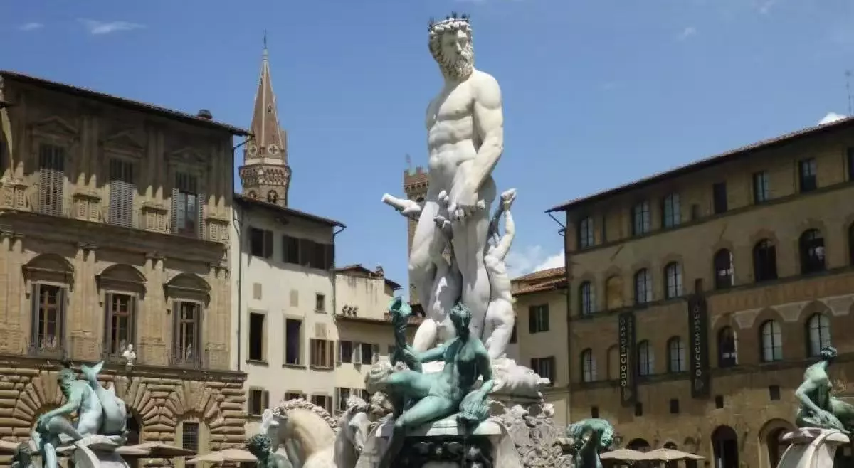 涉事海神噴泉(Fountain of Neptune)為文藝復興時期重要藝術作品,由雕塑家阿曼納提(Bartolomeo Ammannati)於1559年受麥地奇家族(Medici)委託創作。雕像以羅馬海神涅普頓為主體,周圍環繞多匹戰馬,牠們正拉動一座貝殼狀的戰車,具有極高歷史與藝術價值。