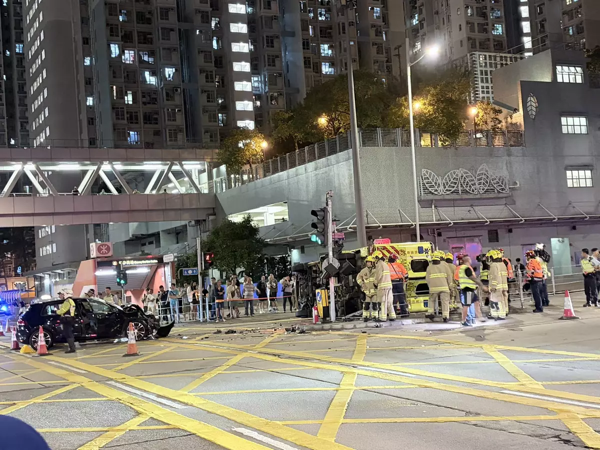 事發於星期四晚11時許,一輛私家車沿長沙灣道東行,駛至長沙灣道及東京街交界時,懷疑收掣不及撞向一輛救護車,導致救護車翻側。意外中,兩名救護員受傷,其中一人臉部及手部疼痛,另一人頸部疼痛;私家車上一名乘客則口部受傷。3人清醒,由救護車送往明愛醫院治理。