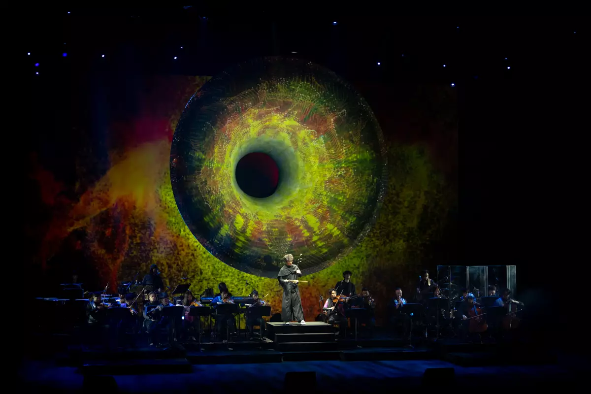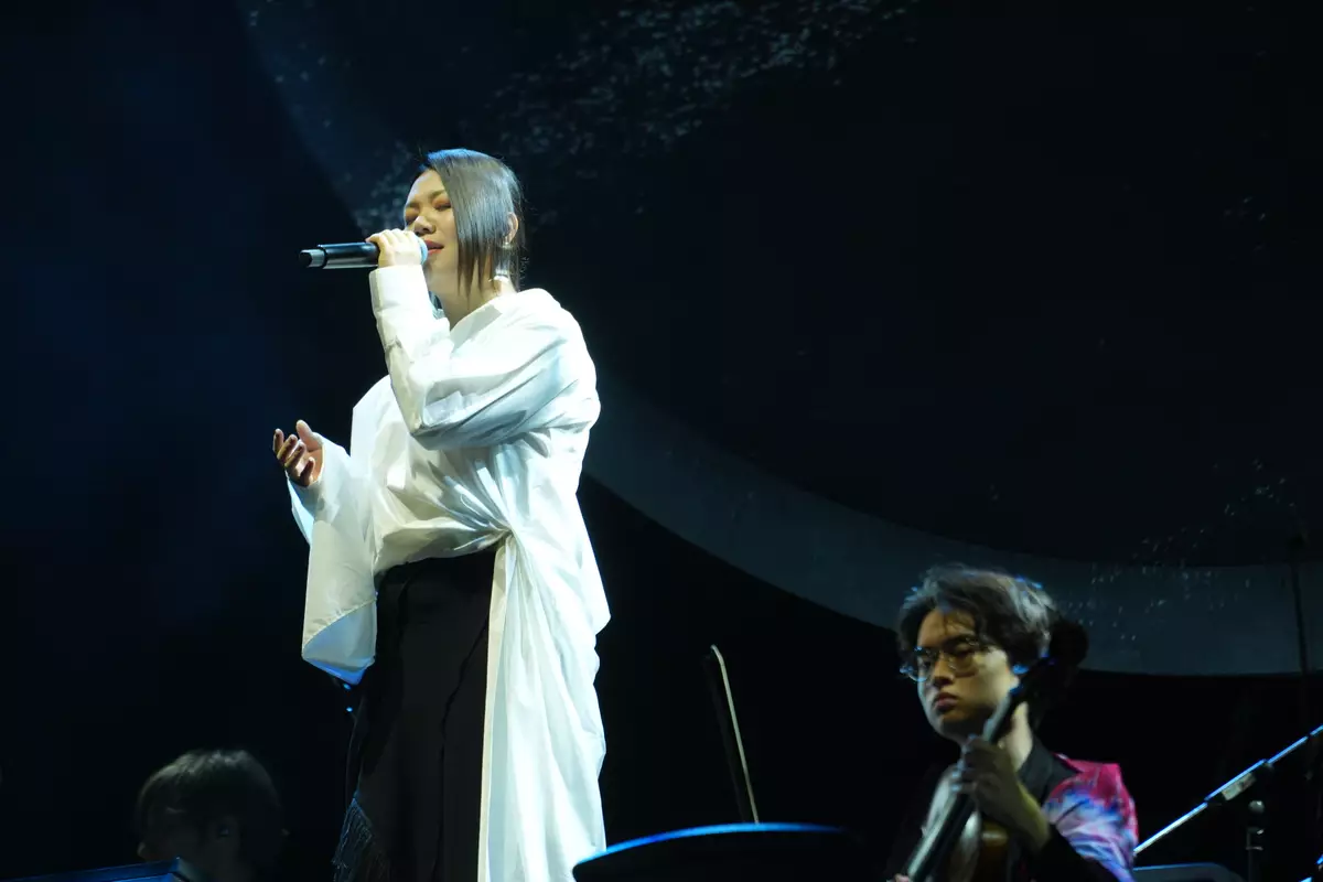 兼任音樂總監暨演出者的朱芸編,甫開場便聯同樂手和室樂團成員,一口氣演奏+首經典電影配樂「炸場」。二胡、結他、小提琴...各種聲音在台上猶如跳探戈一般,無分中西、不辨新舊,只是盡情地起舞。