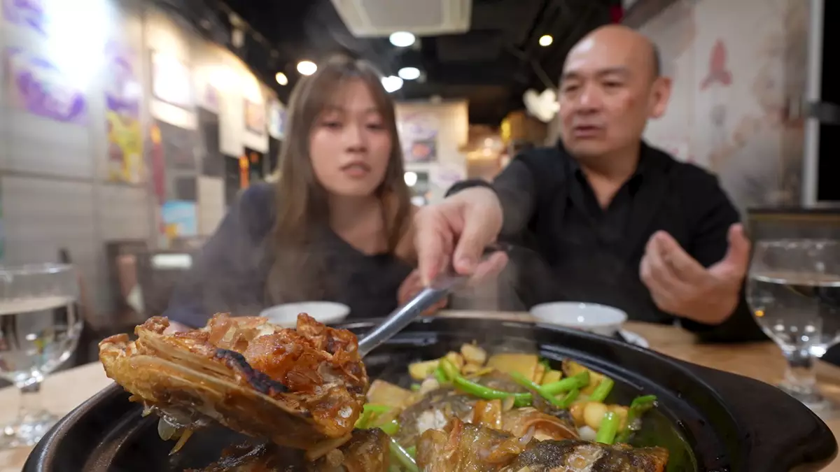 昨晚(4月23日)黃婧靈(波波)跟食評家KC Koo(KC)品嚐正宗順德菜。KC話順德是魚米之鄉,河鮮菜非常有名,一講就會想起拆骨魚雲羹及用魚頭製作的各款菜色;而波波則會懷念兒時經常吃到的炒鮮奶。今次KC為波波分別點了順德煎焗魚嘴、啫啫竹腸魚卜及紅蔥頭蒸污糟雞。KC話焗魚嘴用的是鰱魚一類的大魚,製法是先煎後焗,臨吃前還要在沙鍋來回撈,讓焦香的魚頭沾滿醬汁,令香味更突出。波波極愛吃魚頭內的膠質,特別是魚唇部份,她笑言就好似跟大魚咀嘴一樣。第二味上桌的是紅蔥頭蒸污糟雞,KC道出此味餸的典故說︰「所以叫污糟雞唔係真係『污糟』,係隻雞斬件之後喺銅盤入亂放,唔似白切雞、豉油雞咁排得好靚上碟。」KC還教波波此道菜一個秘傳食法,就是吃到差不多時,以白飯撈雞汁,藉此食盡這味菜的精華。而最後一道啫啫竹腸魚卜盡顯順德人的心思及節儉,KC笑說︰「竹腸即係豬腸頭加上魚檔無乜人要嘅魚卜,順德人用呢啲下欄食材,整成呢道菜。」