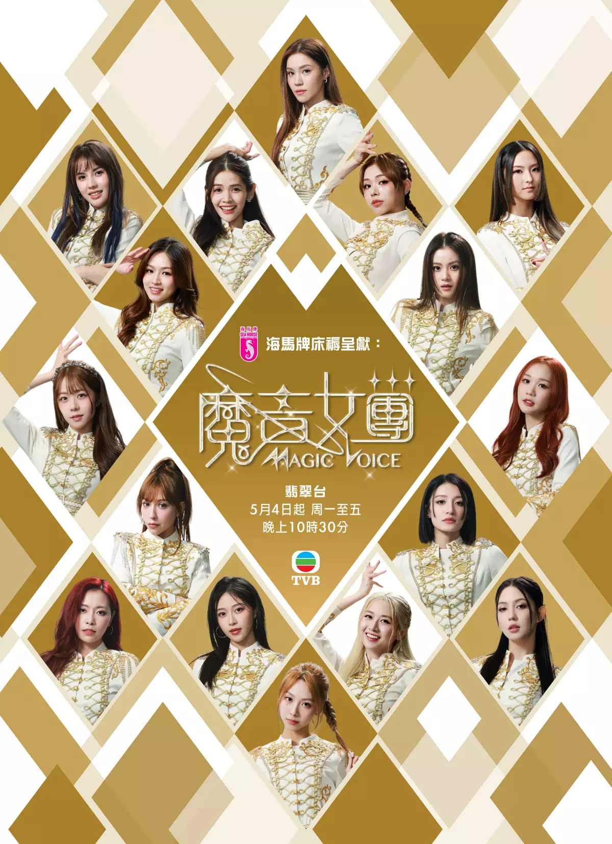 無綫全新綜藝真人騷《海馬牌床褥呈獻:魔音女團》(The Magic Voice),將於5月4日起、逢周一至周五晚翡翠台十點半播映。16位練習生為(排名不分先後):李尹嫣Victoria、穎喬Ziva、邢慧敏Sharon、鄧凱文Eris、宋宛穎Sabrina、倪樂琳Ellyn、王汛文Candice、盧映彤Skylar、俞可程Kanis、廖慧儀Jessica、蔡華英Emily、倪嘉雯Carmen、莊子璇Hilary、喬美莎Chelsea、陳熙蕊Blossom、葉靖儀Michelle,女團導師則為陳奐仁及陳潔靈。