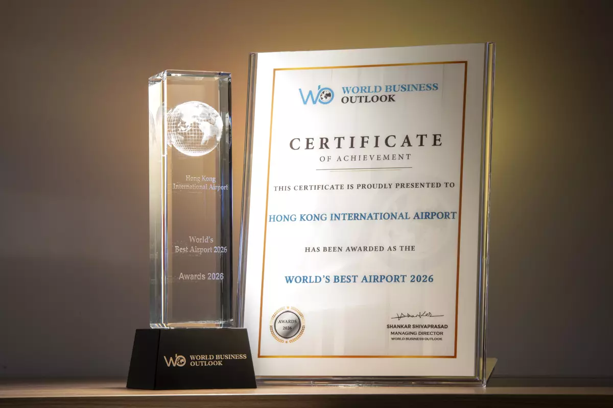 香港國際機場World Business Outlook Awards 2026中,獲選爲「2026年全球最佳機場」。機管局圖片