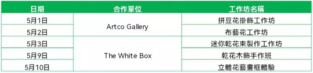 想向親朋摯愛表達心意,送花是最溫馨浪漫的選擇!由5月1日至3日、9日至10日(星期六、日及公眾假期),新城市廣場1期Play Park將聯同親子藝術體驗品牌「Artco Gallery」與「The White Box」打造5大「花花世界工作坊」,在專業導師的引導下,運用拼豆花、布藝花、乾花等素材,親手製作精美掛飾、花束、木飾、畫框等藝術作品,顧客只需於Play Park作任何消費,即可參與當天舉行之工作坊,享受手作時光。