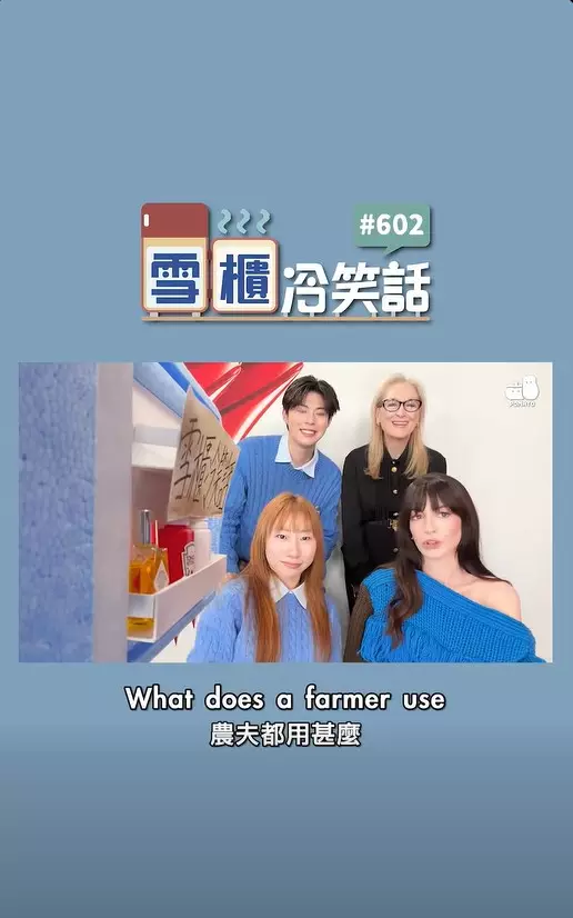 《穿PRADA的惡魔2》(The Devil Wears Prada 2)兩位時尚女王梅麗史翠普(Meryl Streep)以及安妮夏菲維(Anne Hathaway),竟然殺上香港網絡平台小薯茄玩經典的「雪櫃冷笑話」!率先登場的是梅麗史翠普,她講了一個時裝永不迷路的小故事,其後安妮夏菲維也一同挑戰,講了一個數牛牛的食字爛Gag。結果兩條不足15秒的短片,分別在IG上載一日,共錄得超過130萬次瀏覽人次,超誇張,全城更洗版式瘋傳。