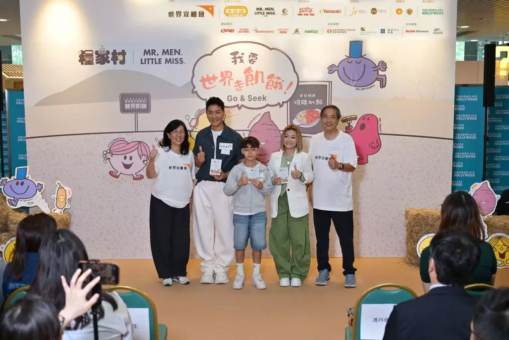 由香港世界宣明會主辦、聯乘英國經典童書Mr. Men Little Miss及「糧家村」故事系列的「我要世界走飢餓 — Go & Seek!」活動,4月25日假荷里活廣場舉行開幕典禮,並邀得「暖男爸爸」黎諾懿、「細心好媽」李佳及其幼子培明親身到場支持,齊齊化身「糧家村村民」,與一眾嘉賓及市民透過親子活動認識世界飢餓議題,現場氣氛熱鬧,吸引不少家庭到場參與。