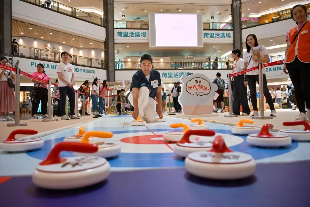 李佳落場玩冰壺遊戲 非常投入
