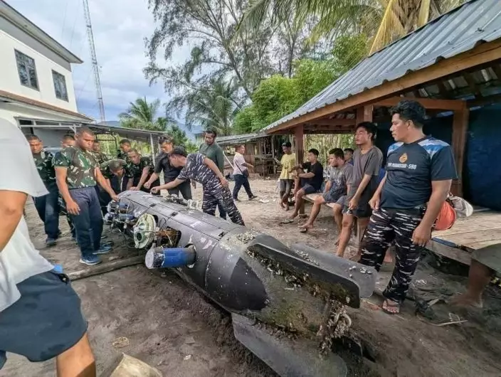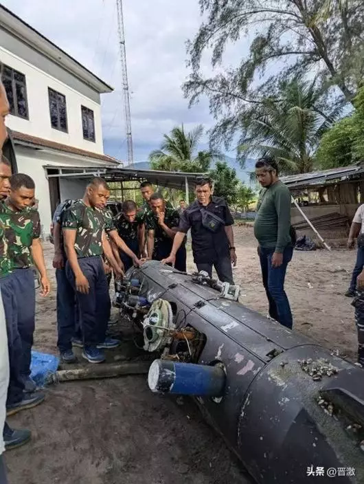 印尼軍方人員現場勘驗並圍觀潛航器,初步判定該裝置為非爆炸性的無人科研器材,並依據國際慣例進行技術歸檔。