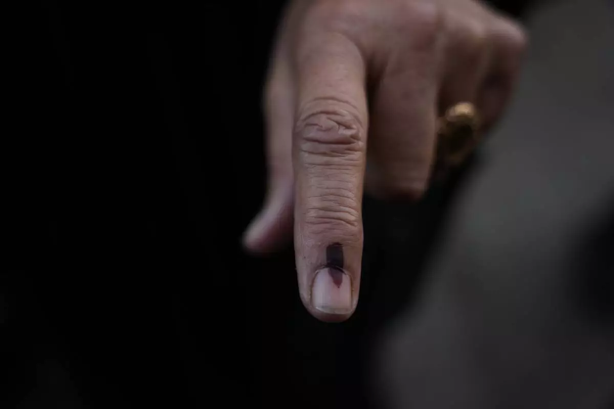選民哈立德·阿爾卡瓦斯梅赫(Khalid al-Qawasmeh)在約旦河西岸城市貝圖尼亞(Beitunia)的投票站外表示:「市政法律需要執行,這樣人們才能感受到公平。」他的手指被染成藍色,以示已投票。