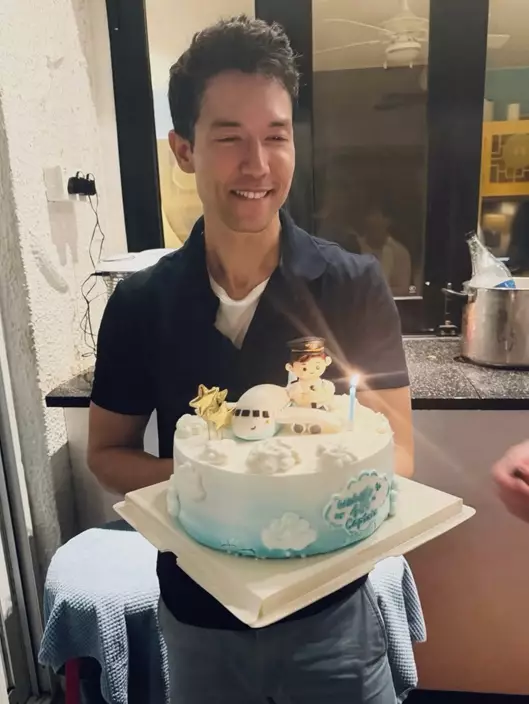 簡淑兒在IG晒出為老公慶生的照片,並留言:「Happy Big 4 zero to our favourite Captain! 」相中可見,簡淑兒倚靠在老公身邊又捉實對方手臂,而麥大力則捧住一個以飛機為主題的蛋糕,二人齊齊向鏡頭露出笑容,十分恩愛!