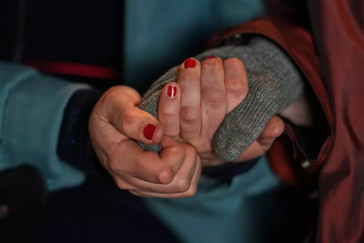 2026年3月26日周四,在德國柏林動物園,由國際天主教援助組織馬爾他騎士團旗下馬爾他德國救濟會為認知障礙症患者組織的導賞團中,項目協調員克里斯汀·格魯什卡(Christine Gruschka)握著85歲的莫妮卡·詹森(Monika Jansen)的手。(美聯社圖片/Markus Schreiber) AP圖片