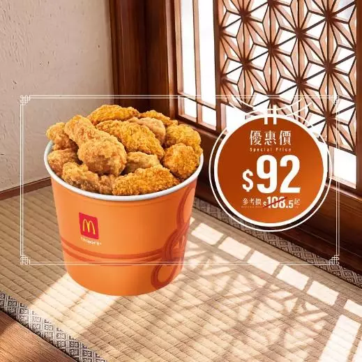 - $68 麥炸雞分享桶(6件)(由平日優惠價$88減至$68)