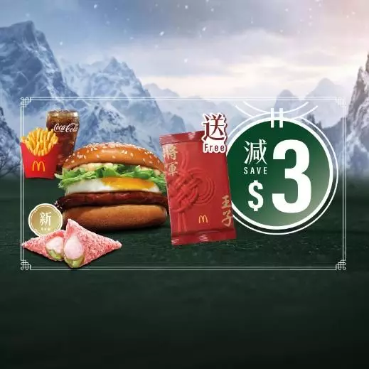 - 玉子將軍漢堡或玉子雙層將軍漢堡超值套餐減$3。