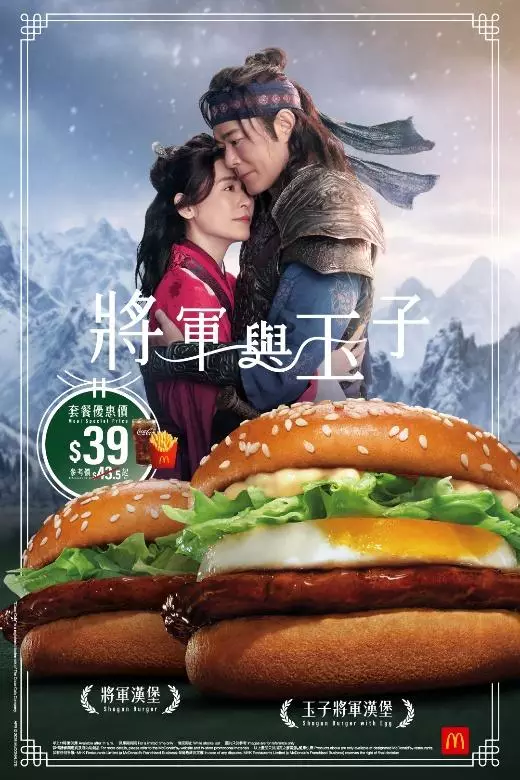 古天樂及宣萱聯乘麥當勞推出將軍漢堡系列