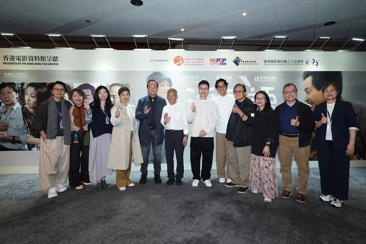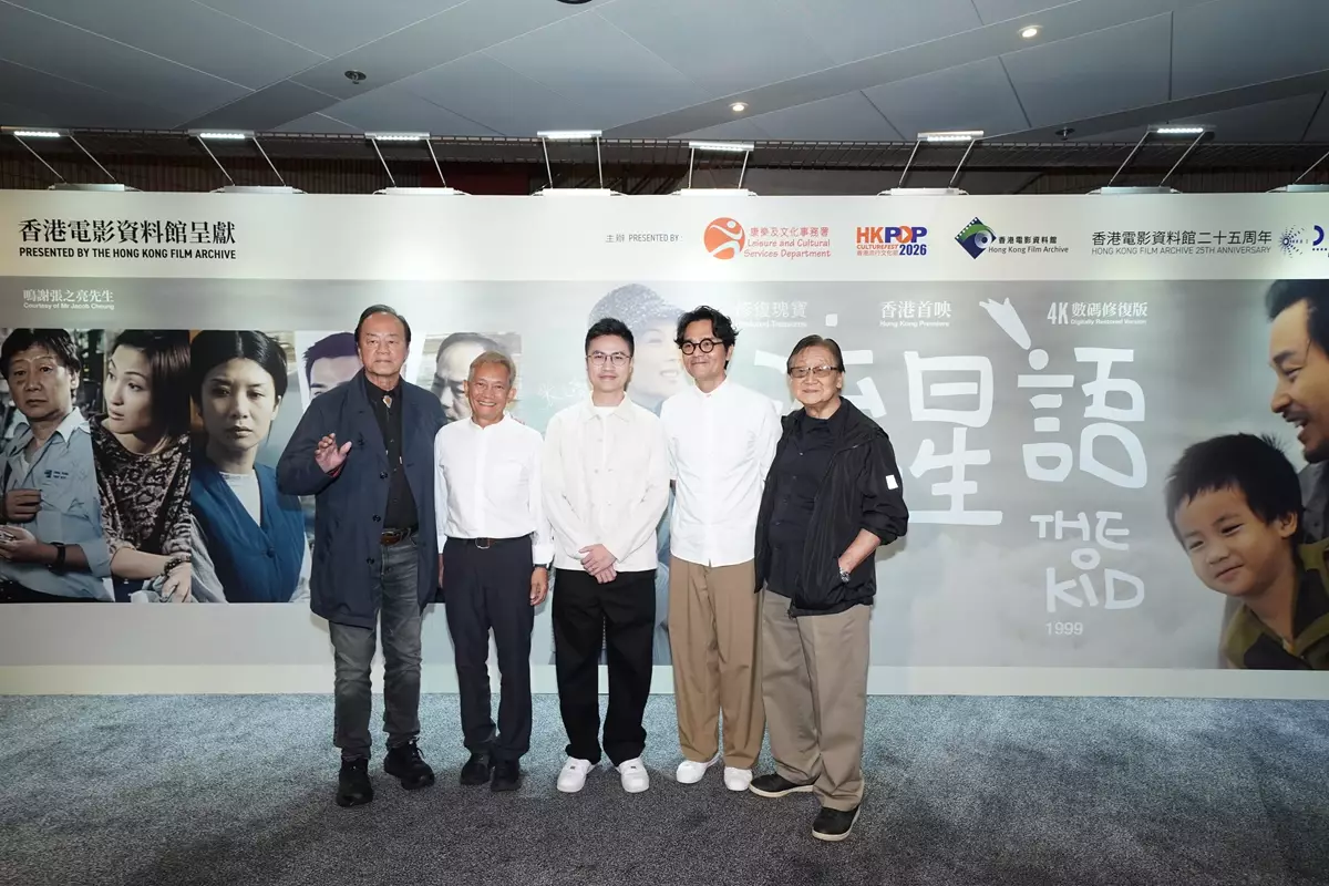 今年是巨星張國榮Leslie誕辰70周年,康樂及文化事務署(康文署)香港電影資料館(資料館)特別推出「修復瑰寶 -《流星語》(1999)(4K數碼修復版)(香港首映)」放映節目,於昨晚(4月26日)晚上在香港文化中心大劇院圓滿完成。今次放映節目為資料館二十五周年誌慶節目及「香港流行文化節2026」節目之一,導演張之亮及另一位發起成立「創意聯盟」的導演張同祖,再加上戲中三位演員包括狄龍、林家棟和飾演「明仔」的葉靖嵐也有出席首映支持。