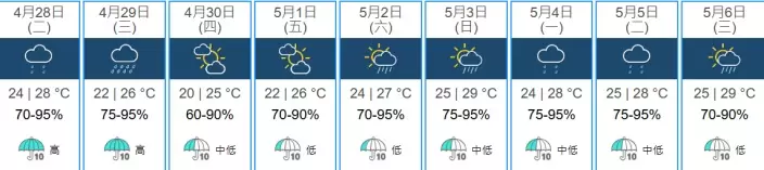 天文台表示,一股偏東氣流正影響廣東沿岸,同時,與高空擾動相關的驟雨及雷暴正影響廣東西部,本港地區今晚及明日(4月28日)天氣預測,大致多雲,有幾陣驟雨,局部地區有狂風雷暴,明日稍後驟雨較多,氣溫介乎24至28度,吹和緩東至東南風,高地風勢間中清勁。