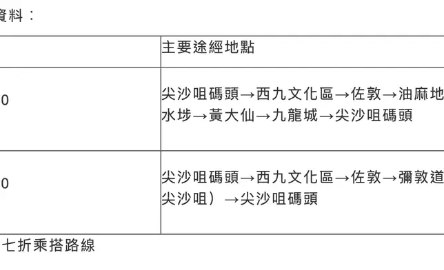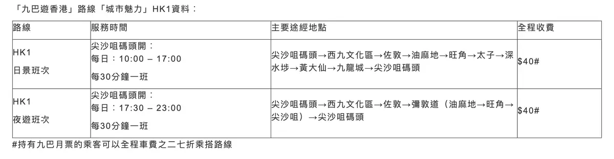 「九巴遊香港」路線「城市魅力」HK1資料︰