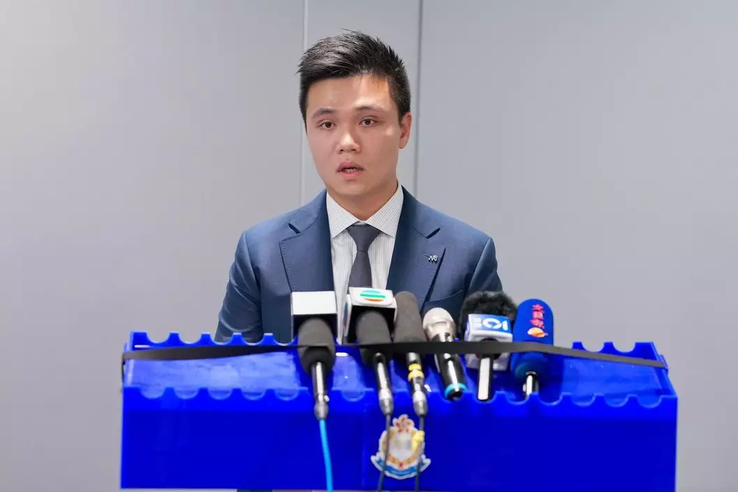 警方油尖警區特別職務隊督察麥啟添向傳媒簡報案情。