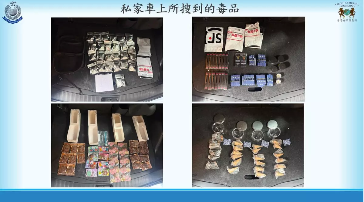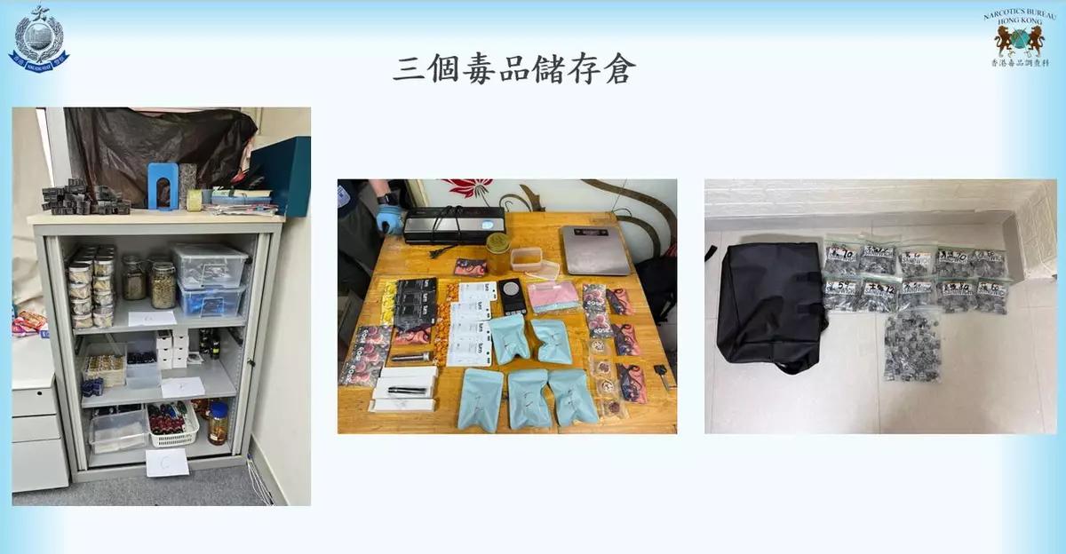 麥啟添稱,行動中,警員先於該女子租住單位外埋伏,並持法庭搜查令進入單位搜查。在單位內,警員發現一批用作製造依托咪酯的工具及約2公升懷疑依托咪酯液體原材料,包括電磁爐、煲具、電子磅及包裝工具等。此外,警方亦檢獲約30克懷疑「霹靂可卡因」製成品及30克懷疑冰毒,總市值約為港幣60萬元。