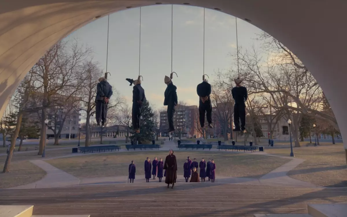 來到全新章節,《證詞》帶你由基列國土生土長的貴族少女角度出發,揭開他們眼底裡的荒謬世界——絞刑成戶外教學,彷如紙本上的教材般;一名男護衛因在校園自慰被揭發而需行鋸手之刑,在嬤嬤的慫恿下,一群觀看行刑的少女毫不在意地大聲呼叫要鋸下他的手臂,場面令人咋舌,極盡荒誕,令無力黑暗感再升級!