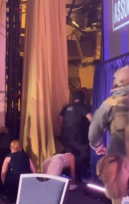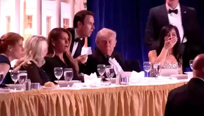 槍擊發生前,特朗普與晚宴主持姜偉嘉在台上有說有笑,現場氣氛輕鬆。