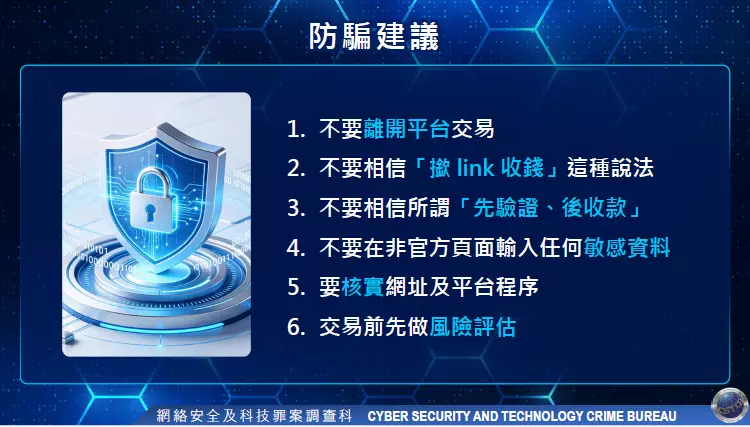 網絡安全及科技罪案調查科總督察梁以德指出,騙案手法層出不窮,而且不斷演變,有五點大家是要留意的: