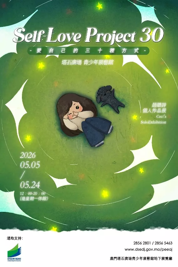 教育及青年發展局轄下青少年展藝館將於2026年5月5日至24日展出「Self-Love Project 30愛自己的三十種方式」── 趙韻詩個人作品展。是次展覽將展出本澳青年藝術者趙韻詩的30幅作品,每一幅作品均表達一種愛自己的方式。作者認為,人們會在工作、學習以及旁人目光等的影響下,慢慢迷失自我,忘記傾聽內心的聲音,壓抑真實的自我,因此構思這些作品。作者冀觀眾欣賞作品時,可暫時放下煩惱,並從中吸取愛自己的方法,及每天都擁有愛自己的時刻。