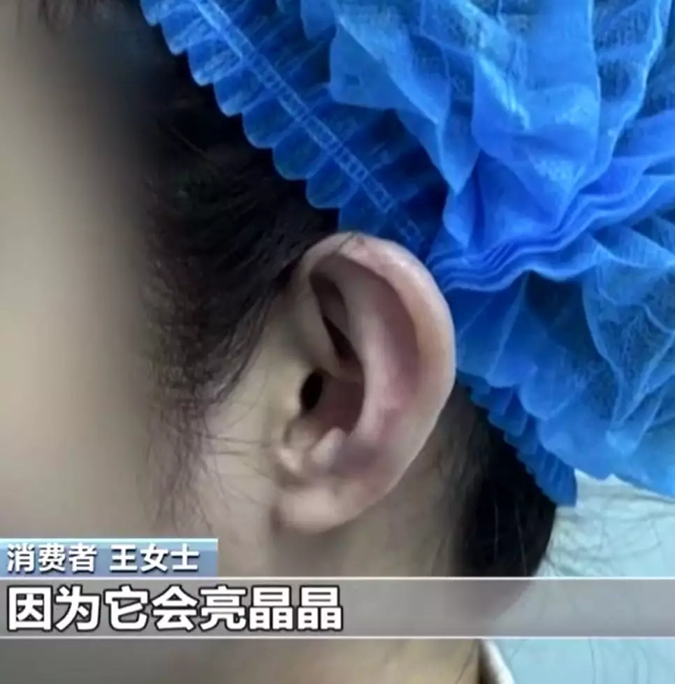 郭鑫描述,王女士的「耳廓打了好多玻尿酸,皮膚透亮,感覺搖搖欲墜的,說不准哪天破了玻尿酸流出來。」他更指出,即便現在進行修復或取出假體,耳朵也再難恢復到術前的模樣。