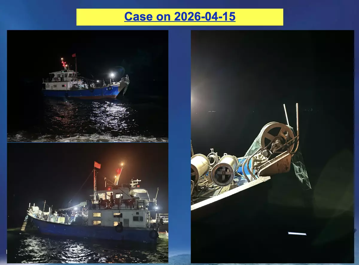 為加強打擊相關活動,在過去四個星期,水警南分區聯同漁護署採取連日的聯合執法行動。行動中,人員利用水警輪進行攔截,成功破獲三宗非法捕魚案件,涉及一艘內地漁船及兩艘本地漁船。案件包括兩宗涉嫌在南丫島水域及索罟群島一帶使用蛇籠進行非法捕魚,以及一宗在石鼓洲及長洲一帶進行非法拖網捕魚的蝦拖漁船案。人員在船上檢取了一批捕魚工具,包括拖網工具及蛇籠。相關人士涉嫌使用已被禁止的器具捕魚,已由漁護署進行檢控。