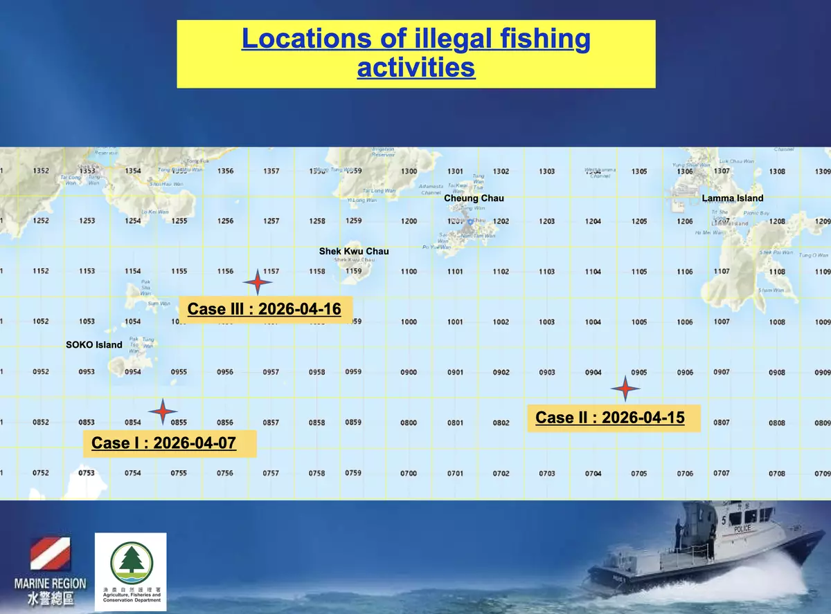 警方表示,聯同漁護署經過一段時期的觀察及情報收集,相信有不守法的漁民,在中午至晚上時分,於香港南面水域近長洲、南丫島及索罟群島一帶進行非法捕魚活動。