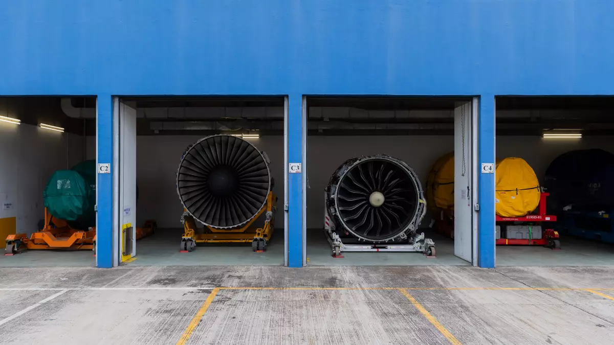 香港飛機工程的飛機引擎儲存倉庫。