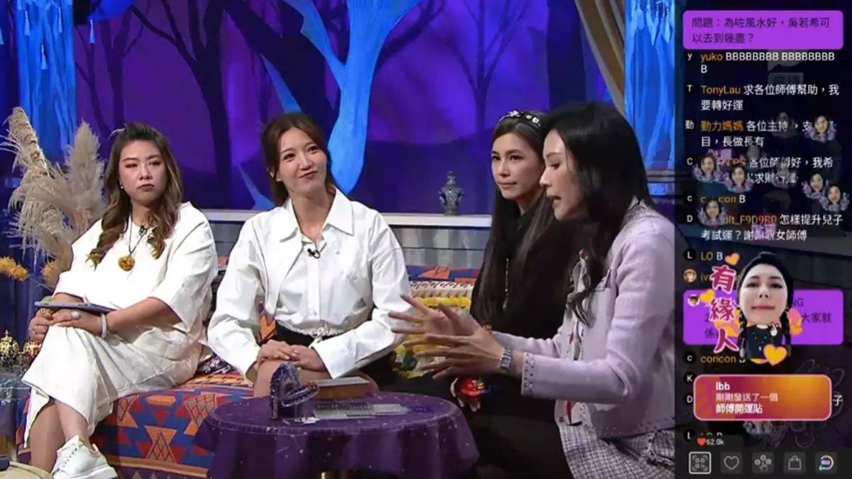 由「資深廟祝」火火、「實習廟祝」施焯日(Arthur)主持TVB Plus(82台)全新直播互動綜藝節目《師傅點算》昨晚(4月27日)主題是「迷信」,請來嘉賓靚太吳若希Jinny,自認是迷信之人,每次搬屋都會找風水師傅幫手,她笑說︰「一路都係租樓住,每一次搬屋都要睇風水,就算買樓都要跟住一啲坐向買,例如未來呢啲坐向行運嘅就買。」