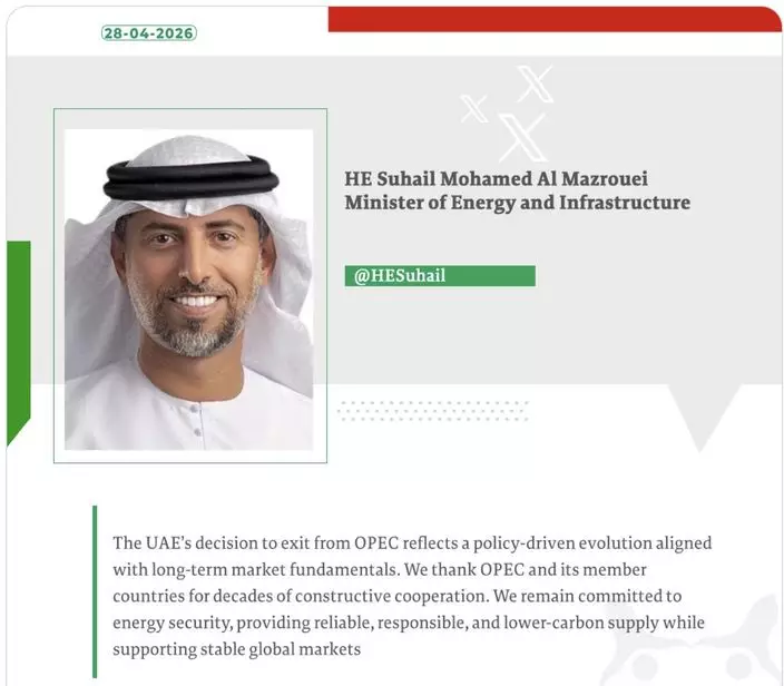 阿聯酋能源部長馬茲魯伊表示,阿聯酋選擇現在退出OPEC是最好時機,因霍爾木茲海峽關閉,其退出對石油市場的影響將有限。