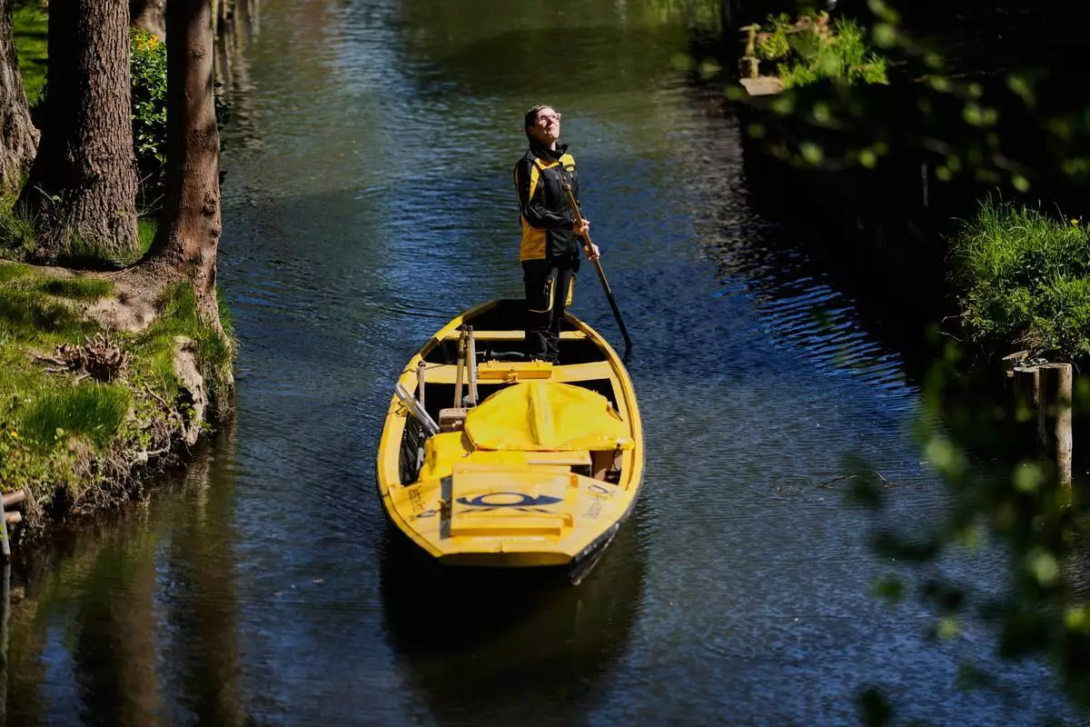 德國萊德(Lehde)村莊的郵差安德里亞·布納爾(Andrea Bunar)期待春季來臨已久,盼望能再次駕船,穿梭於柏林東南部的施普雷瓦爾德森林三角洲(Spreewald Forest delta)狹窄水道,派遞郵件。這位55歲的德國郵差周三再次站在船尾,利用一支長槳划船、掌舵,在淺水區中航行。