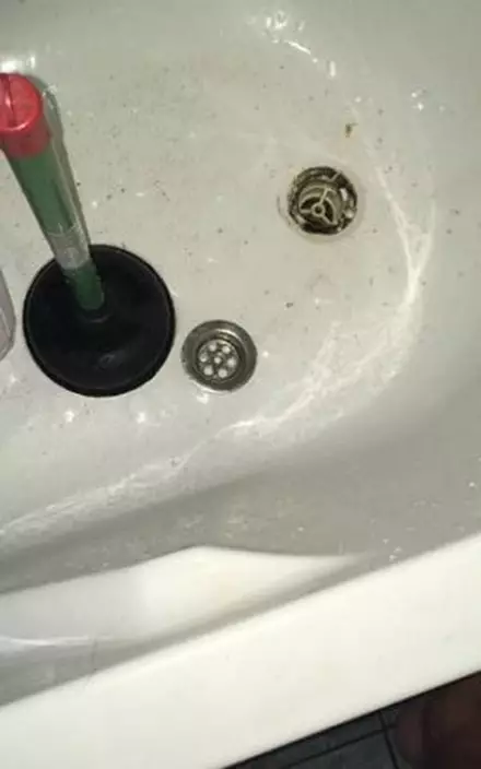 有台灣網友在網上論壇貼文表示:「老婆說浴缸怎麼忽然塞住了,於是去檢查。」他貼出兩張照片,只見他先用通渠泵在排水後泵了好一會兒,但似乎仍無法去水,於是他將排水口外層的鐵蓋拆開,結果一看,讓他呆住了。