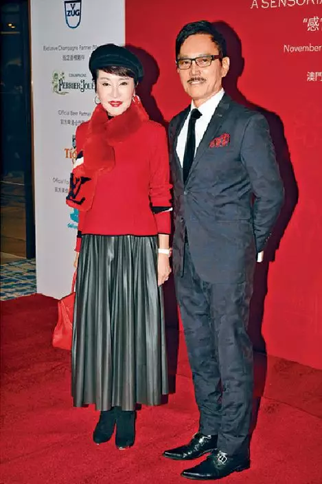 大肚凸凸的Anita仍堅持以鬆身衫配魚尾長裙、披上黑皮褸平底鞋,珠光寶氣再加個50萬的Hermes Birkin鱷魚皮手袋,貴氣十足。