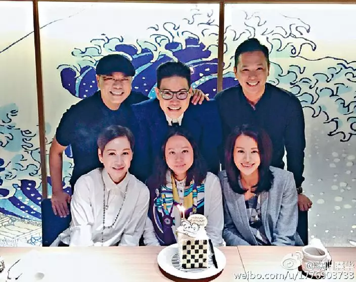 早前,蘇永康夫婦(中)約好友歐陽震華兩公婆(左),以及胡杏兒夫婦(右),飯聚分享喜悅。