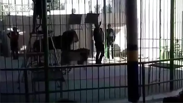 埃及一個馬戲團在表演途中,一隻獅子突然發狂咬死一名馴獸師,現場大批觀眾親眼目擊意外,兒童都放聲尖叫。