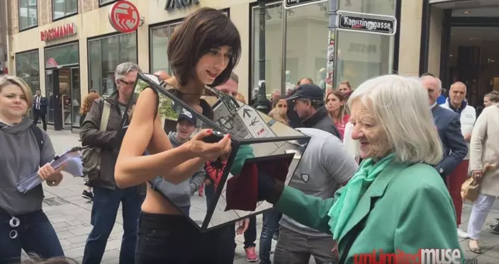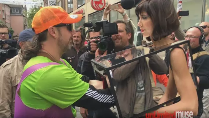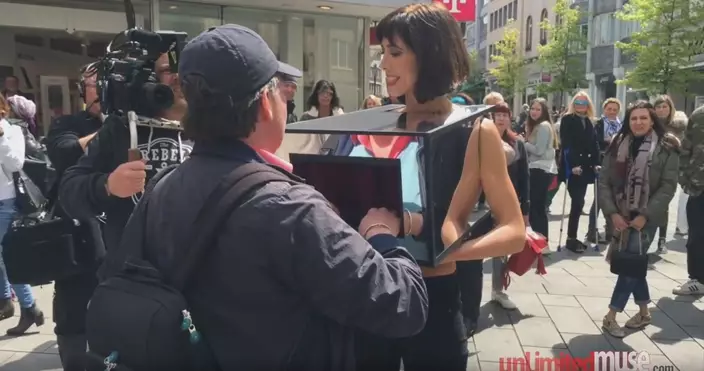 來自瑞士的行為藝術家莫雷(Milo Moire)早前在倫敦街頭,全身一絲不掛僅用一個「魔鏡箱(Mirror Box)」遮掩身體重要部位,她讓途人將手伸進箱內,撫摸她的胸部及下體。