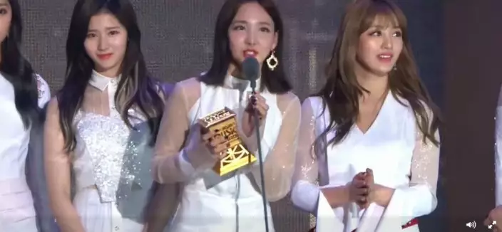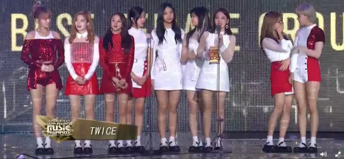出道僅一年兩個月的女團TWICE火速上位攞獎,她們表示多謝公司和工作人員,以及辛苦工作的經理人,指很幸福可以拿獎,更要多謝粉絲。