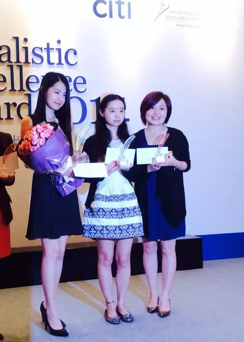 左一為獲得冠軍的東周刊記者歐陽慧恩