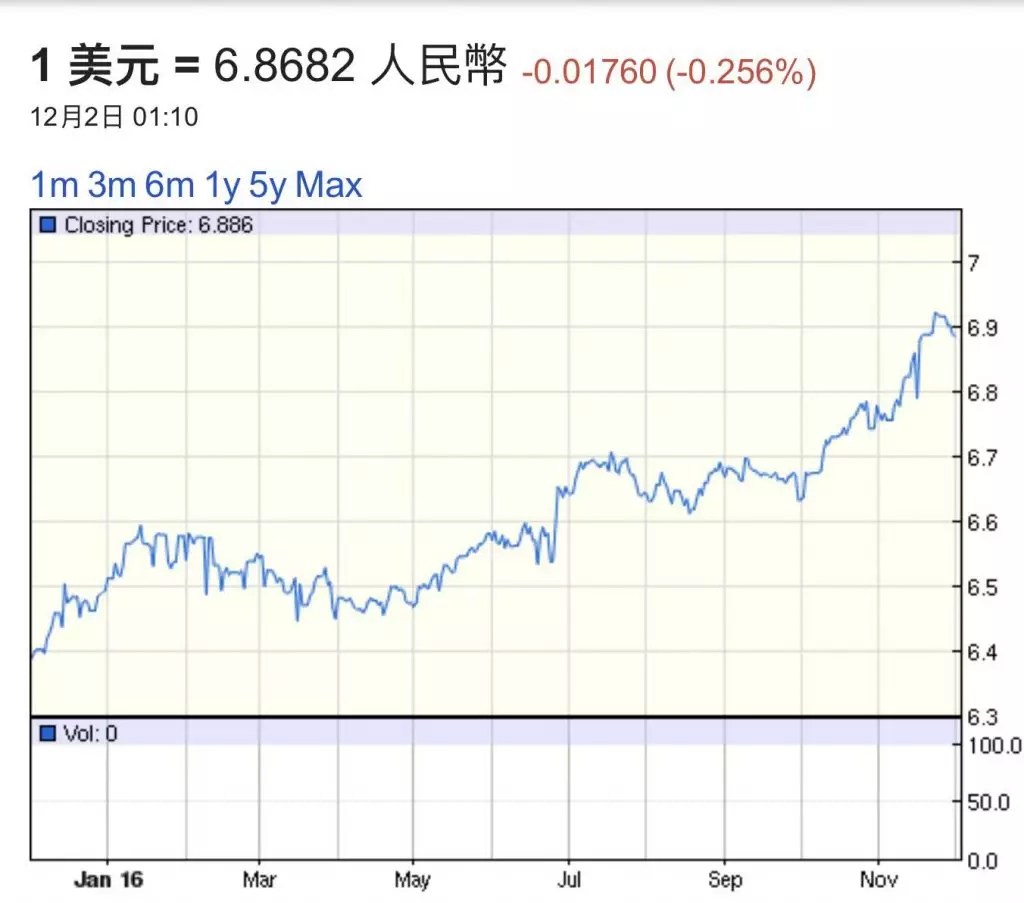 特朗普宣布委任前高盛人姆欽做財政部長,姆欽揚言明年1月上任100日內,會將中國列為匯率操縱國,指控人民幣過度貶值,對美國貿易不利。如果特朗普上台同中國有好多貿易磨擦,中國都要對特朗普讓下步,入市干預,支持一下人仔匯價,所以人仔要在特朗普上台之前超前下跌,藉此支持一下外貿,等特朗普上台之後,人仔下跌空間將會收窄。